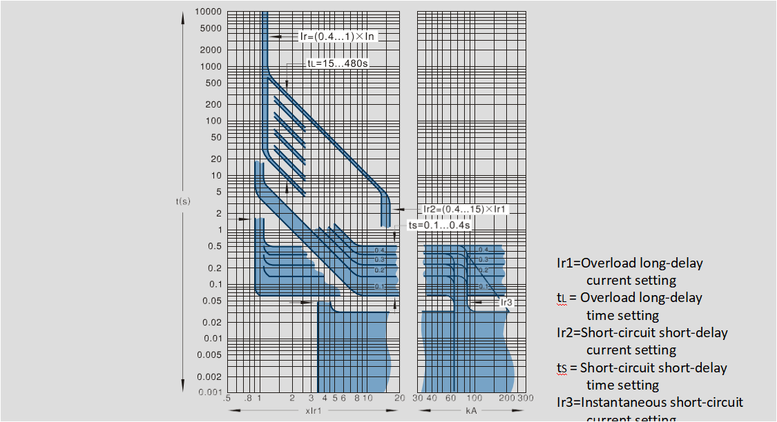 Short-delay for short-circuit time ts can adjust.